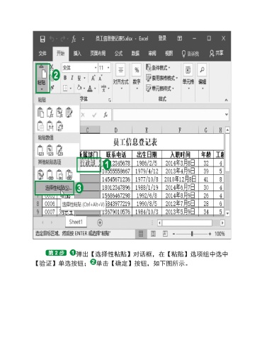 弹出【选择性粘贴】对话框,在【粘贴】选项组中选中 【验证】单选按钮; 单击【确定】按钮,如下图所示。