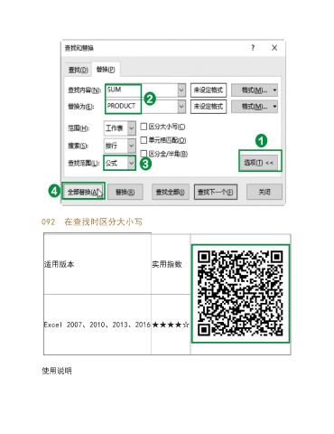 092 在查找时区分大小写 适用版本 实用指数 Excel 2007、2010、2013、2016★★★★☆ 使用说明