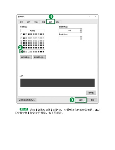 返回【查找和替换】对话框,可看到填充色的预览效果,单击 【全部替换】按钮进行替换,如下图所示。