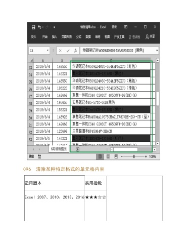 096 清除某种特定格式的单元格内容 适用版本 实用指数 Excel 2007、2010、2013、2016★★★☆☆