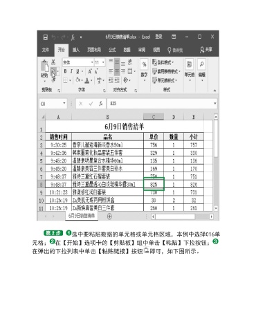 选中要粘贴数据的单元格或单元格区域,本例中选择C16单 元格; 在【开始】选项卡的【剪贴板】组中单击【粘贴】下拉按钮; 在弹出的下拉列表中单击【粘贴链接】按钮 即可,如下图所示。