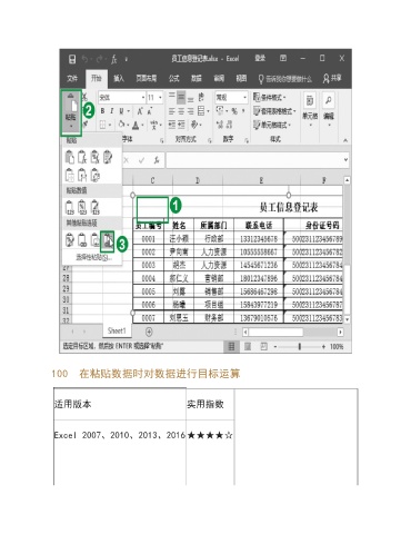100 在粘贴数据时对数据进行目标运算 适用版本 实用指数 Excel 2007、2010、2013、2016★★★★☆