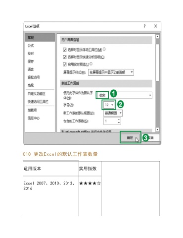 010 更改Excel的默认工作表数量 适用版本 实用指数 Excel 2007、2010、2013、 ★★★★☆ 2016