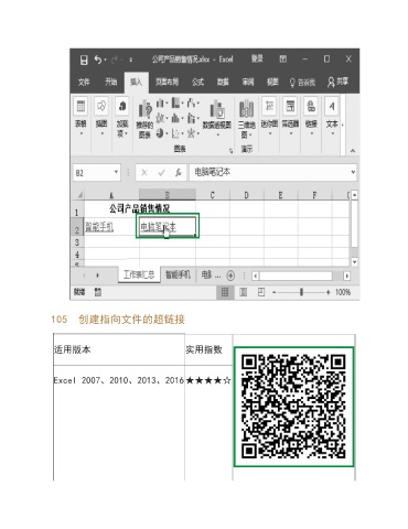 105 创建指向文件的超链接 适用版本 实用指数 Excel 2007、2010、2013、2016★★★★☆