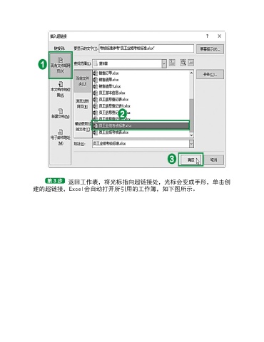 返回工作表,将光标指向超链接处,光标会变成手形,单击创 建的超链接,Excel会自动打开所引用的工作簿,如下图所示。