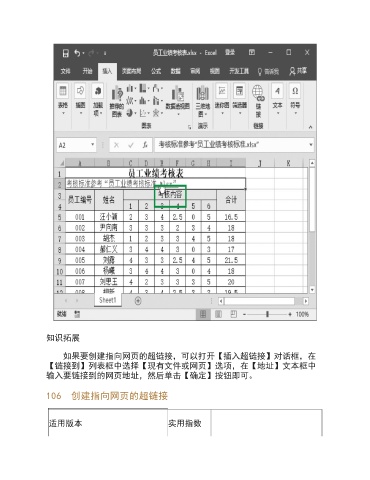 知识拓展 如果要创建指向网页的超链接,可以打开【插入超链接】对话框,在 【链接到】列表框中选择【现有文件或网页】选项,在【地址】文本框中 输入要链接到的网页地址,然后单击【确定】按钮即可。 106 创建指向网页的超链接 适用版本 实用指数