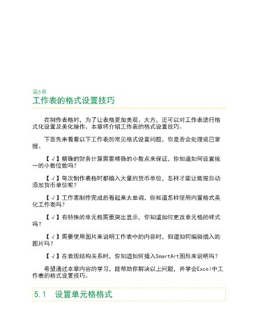 式化设置及美化操作。本章将介绍工作表的格式设置技巧。