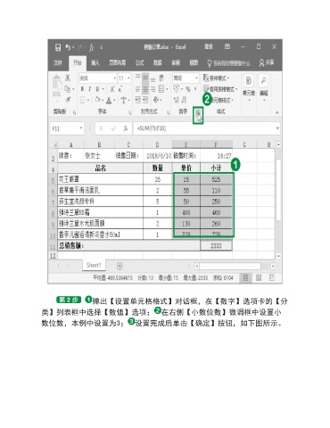 弹出【设置单元格格式】对话框,在【数字】选项卡的【分 类】列表框中选择【数值】选项; 在右侧【小数位数】微调框中设置小 数位数,本例中设置为3; 设置完成后单击【确定】按钮,如下图所示。