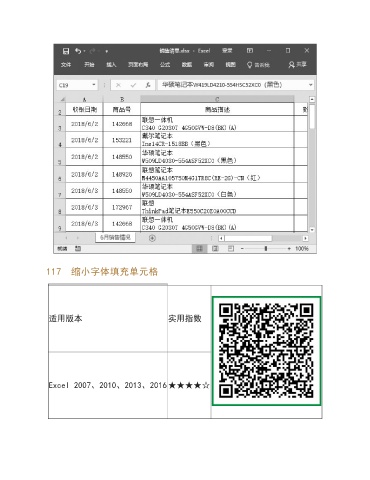 117 缩小字体填充单元格 适用版本 实用指数 Excel 2007、2010、2013、2016★★★★☆