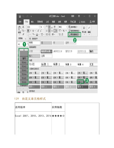 129 自定义单元格样式 适用版本 实用指数 Excel 2007、2010、2013、2016★★★★☆