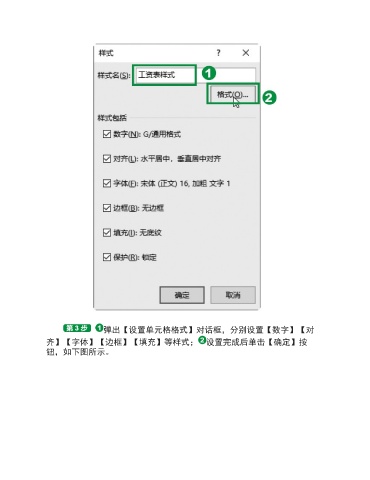 弹出【设置单元格格式】对话框,分别设置【数字】【对 齐】【字体】【边框】【填充】等样式; 设置完成后单击【确定】按 钮,如下图所示。