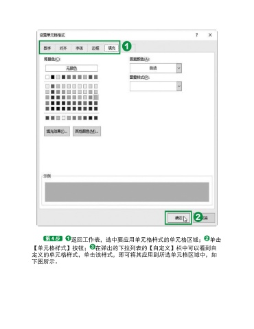 返回工作表,选中要应用单元格样式的单元格区域; 单击 【单元格样式】按钮; 在弹出的下拉列表的【自定义】栏中可以看到自 定义的单元格样式,单击该样式,即可将其应用到所选单元格区域中,如 下图所示。