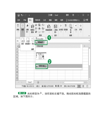 光标将变为 ,按住鼠标左键不放,拖动鼠标框选要截图的 区域,如下图所示。