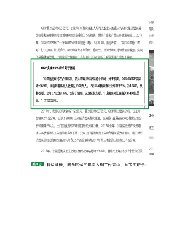 释放鼠标,所选区域即可插入到工作表中,如下图所示。