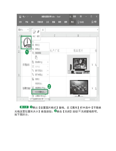 弹出【设置图片格式】窗格,在【属性】栏中选中【不随单 元格改变位置和大小】单选按钮; 单击【关闭】按钮 关闭窗格即可, 如下图所示。