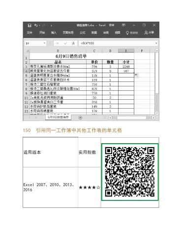 150 引用同一工作簿中其他工作表的单元格 适用版本 实用指数 Excel 2007、2010、2013、 ★★★★☆ 2016
