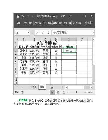 将在【定价】工作表引用的单元格地址转换为绝对引用, 并复制到相应的单元格中,如下图所示。