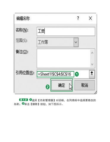 返回【名称管理器】对话框,在列表框中选择要修改的 名称; 单击【删除】按钮,如下图所示。