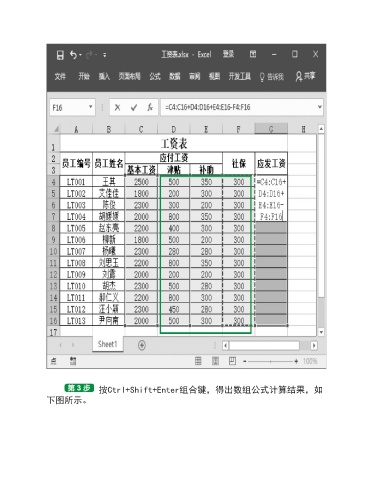 按Ctrl+Shift+Enter组合键,得出数组公式计算结果,如 下图所示。