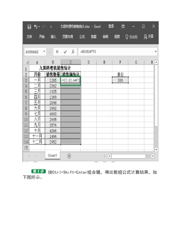 按Ctrl+Shift+Enter组合键,得出数组公式计算结果,如 下图所示。