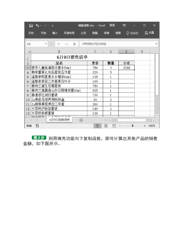 利用填充功能向下复制函数,即可计算出其他产品的销售 金额,如下图所示。
