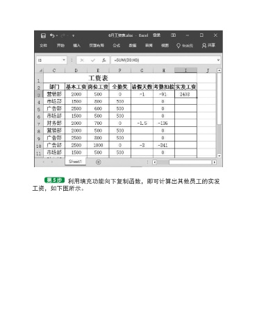 利用填充功能向下复制函数,即可计算出其他员工的实发 工资,如下图所示。