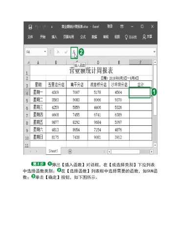 弹出【插入函数】对话框,在【或选择类别】下拉列表 中选择函数类别; 在【选择函数】列表框中选择需要的函数,如SUM函 数; 单击【确定】按钮,如下图所示。
