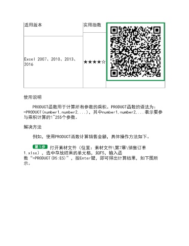 例如,使用PRODUCT函数计算销售金额,具体操作方法如下。