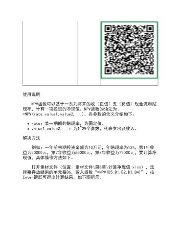 打开素材文件(位置:素材文件\第8章\计算净现值.xlsx),选