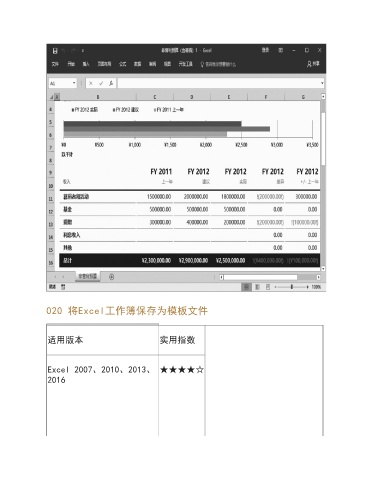 020 将Excel工作簿保存为模板文件 适用版本 实用指数 Excel 2007、2010、2013、 ★★★★☆ 2016