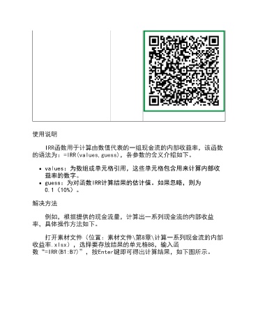 的语法为:=IRR(values,guess),各参数的含义介绍如下。