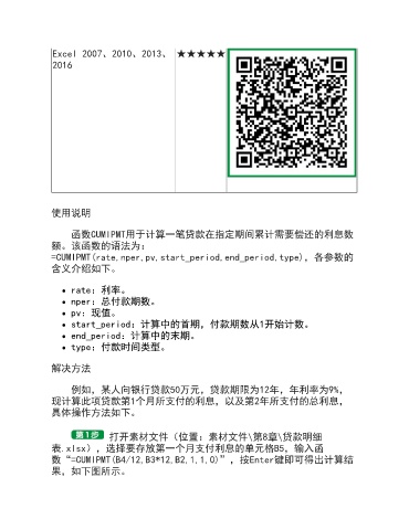 函数CUMIPMT用于计算一笔贷款在指定期间累计需要偿还的利息数