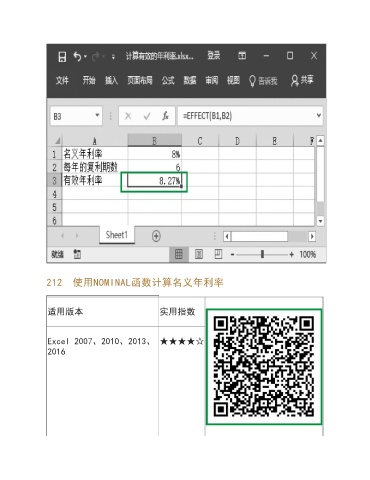 212 使用NOMINAL函数计算名义年利率 适用版本 实用指数 Excel 2007、2010、2013、 ★★★★☆ 2016