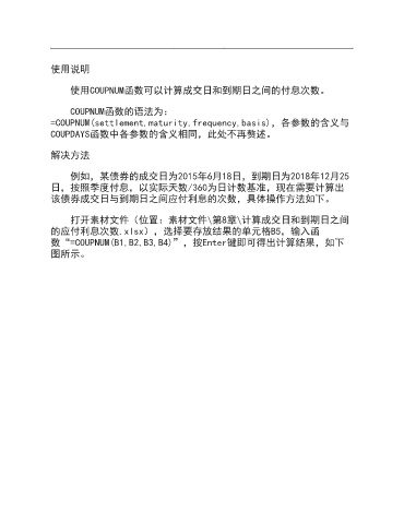使用COUPNUM函数可以计算成交日和到期日之间的付息次数。