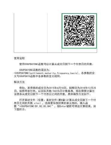 数“=COUPDAYSNC(B1,B2,B3,B4)”,按Enter键即可得出计算结果,如