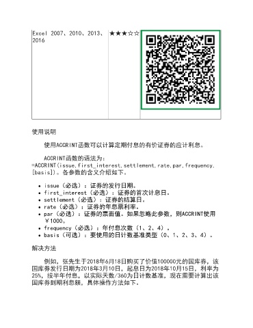 使用ACCRINT函数可以计算定期付息的有价证券的应计利息。