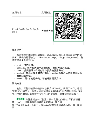 数“=DB(B2,B3,B4,1,5)”,按Enter键即可得出计算结果,如下图所