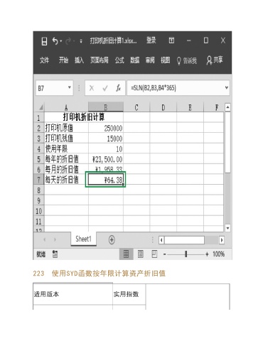 223 使用SYD函数按年限计算资产折旧值 适用版本 实用指数
