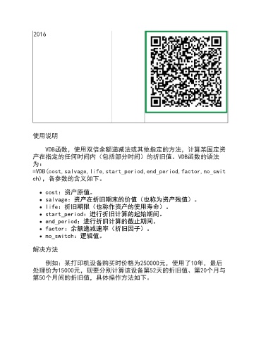 产在指定的任何时间内(包括部分时间)的折旧值。VDB函数的语法