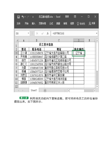 利用填充功能向下复制函数,即可将所有员工的所在省份 提取出来,如下图所示。