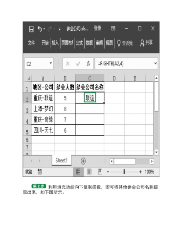 利用填充功能向下复制函数,即可将其他参会公司名称提 取出来,如下图所示。