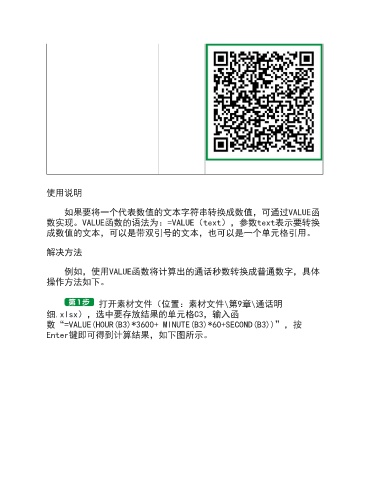 例如,使用VALUE函数将计算出的通话秒数转换成普通数字,具体