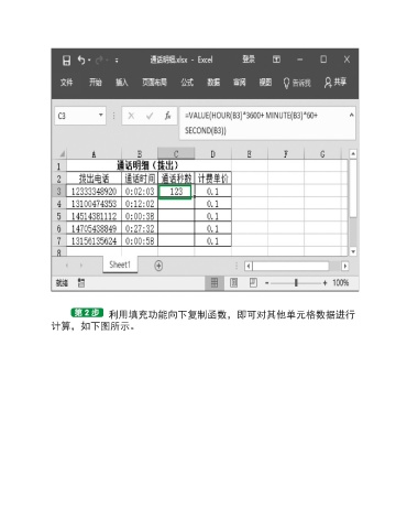 利用填充功能向下复制函数,即可对其他单元格数据进行 计算,如下图所示。