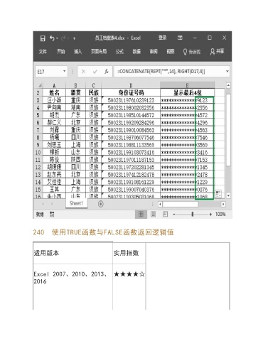 240 使用TRUE函数与FALSE函数返回逻辑值 适用版本 实用指数 Excel 2007、2010、2013、 ★★★★☆ 2016