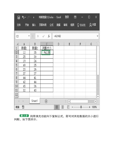 利用填充功能向下复制公式,即可对其他数据的大小进行 判断,如下图所示。