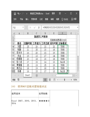 243 使用NOT函数对逻辑值求反 适用版本 实用指数 Excel 2007、2010、2013、 ★★★★☆ 2016