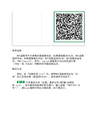 为:=NOT(logical),其中,logical参数表示可以对其进行真