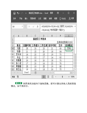 利用填充功能向下复制函数,即可计算出其他人员的筛选 情况,如下图所示。