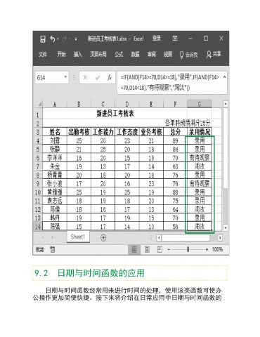 9.2 日期与时间函数的应用 日期与时间函数经常用来进行时间的处理,使用该类函数可使办 公操作更加简便快捷。接下来将介绍在日常应用中日期与时间函数的