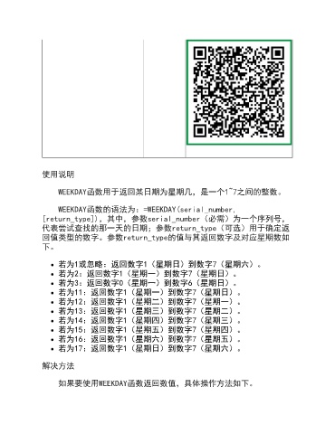 WEEKDAY函数的语法为:=WEEKDAY(serial_number,